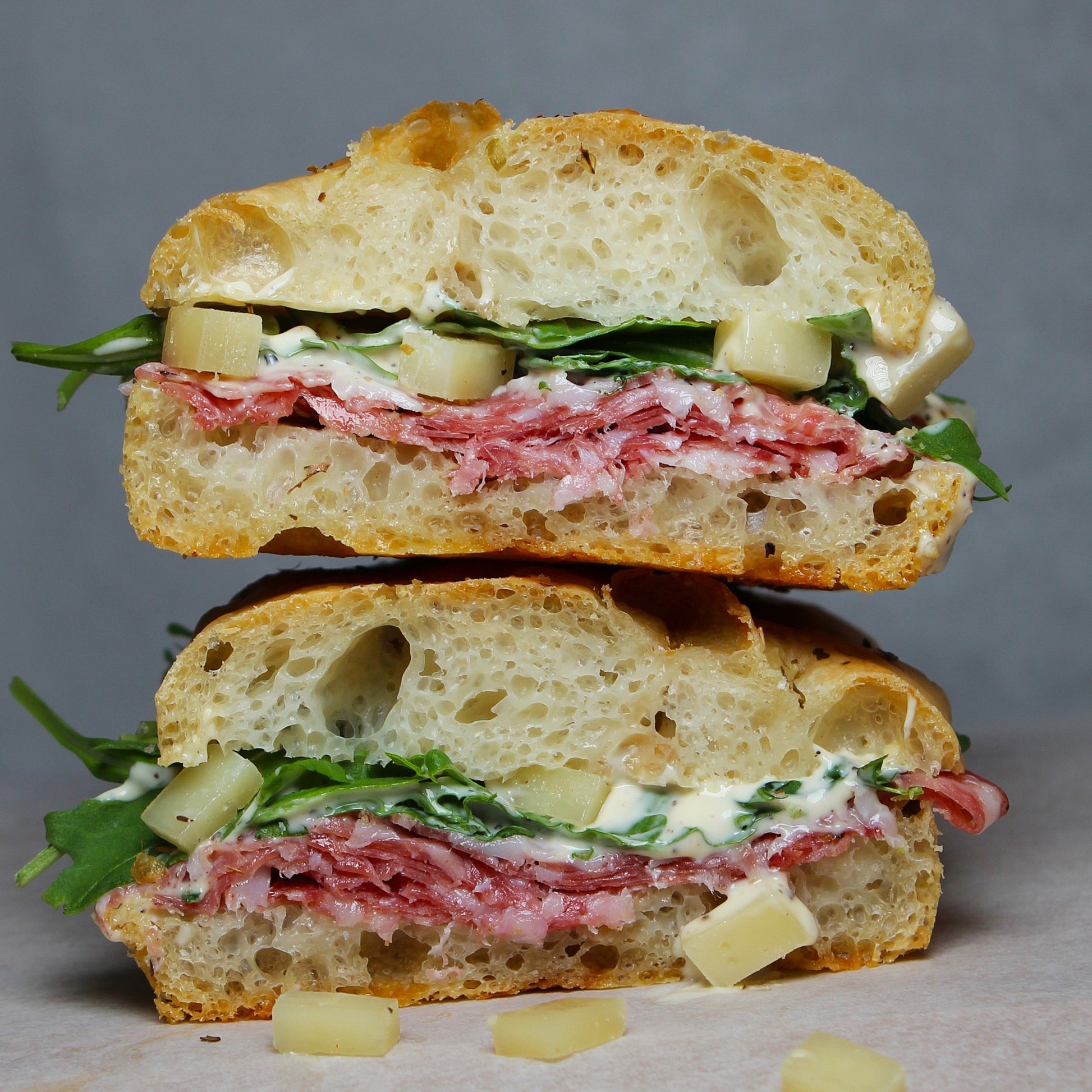 Salami Spianata Romana - Zwarte Truffel & Gekonfijte Knoflook Aioli - Grana Padano - Rucola